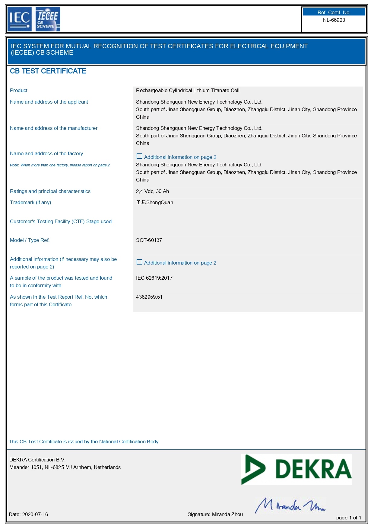 山東聖泉新能(néng)源科技有限公司成(chéng)立于2017年,是一家專注于鈉離子電池正負極材料、钛酸锂電池電芯、模組和系統集成(chéng)研發(fā)、生産及銷售的高新技術企業。公司建有鈉離子電池層狀氧化物、聚陰離子正極材料以及硬碳負極材料的研發(fā)、中試和産業化生産線,同時(shí)還(hái)配備了鈉離子電芯小試及中試驗證線。針對(duì)钛酸锂電芯擁有完整的生産線、Pack裝配線、幹法電極生産線、電芯研發(fā)中心、電池系統綜合試驗中心。