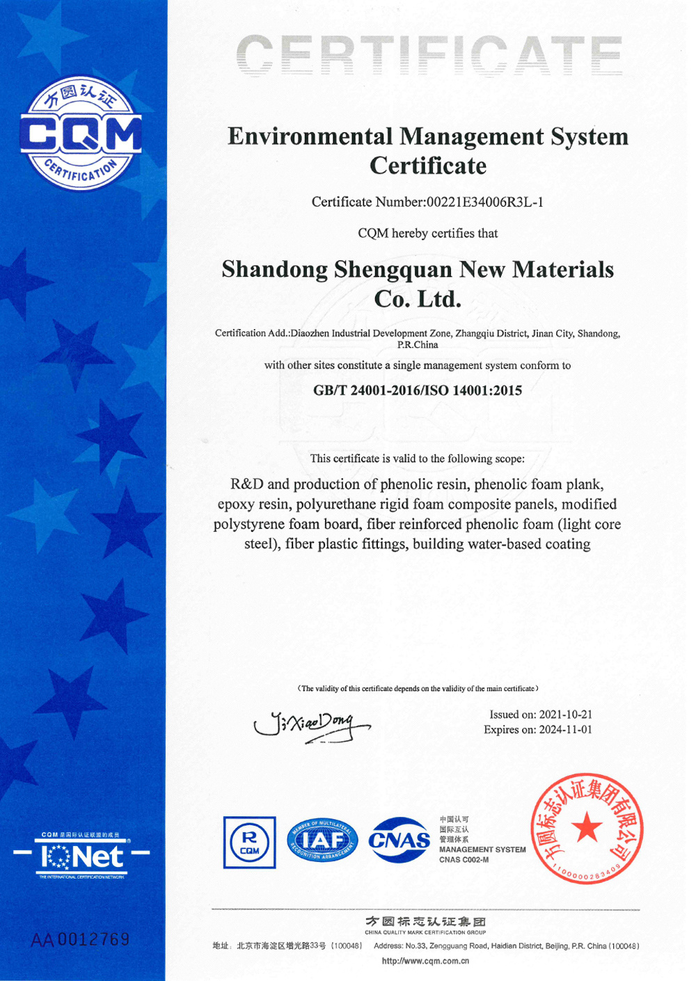 Shengquan Group worked with Institute of Chemistry Chinese Academy of Sciences to jointly build the “Phenolic Resin Research Center”.