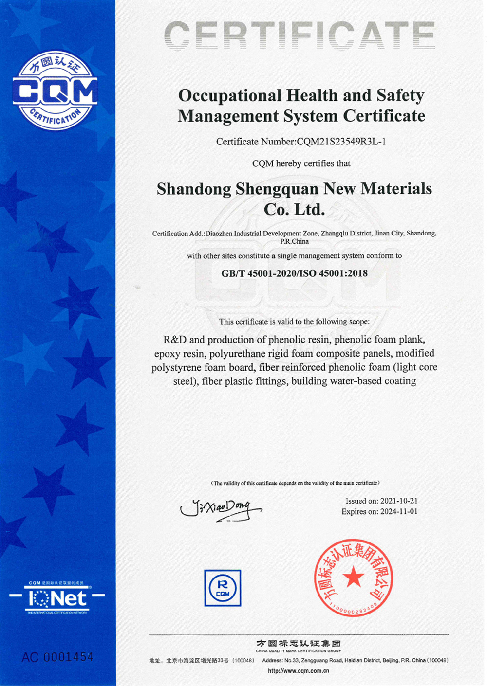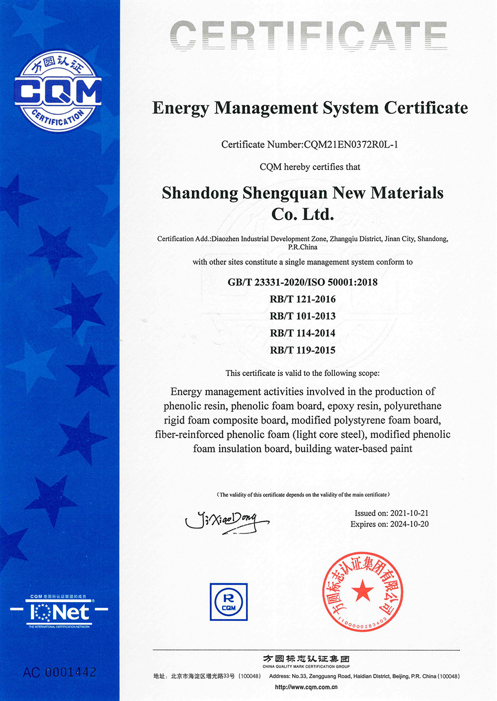 Shengquan Group entered into the phenolic resin industry.