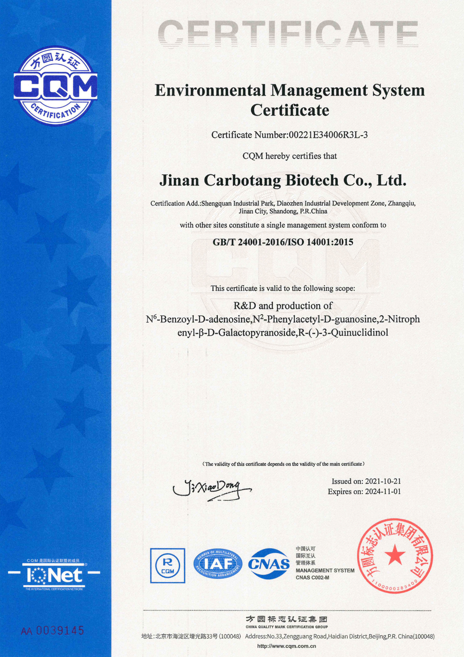 Jinan Carbotang Biotech Co., Ltd is a high-tech enterprise that specializing in the R&D, production and sales of pharmaceutical intermediates and fine chemicals, which was founded by Jinan Shengquan Group Share-holding Co.,Ltd and Carbosynth Limited UK in 2011.