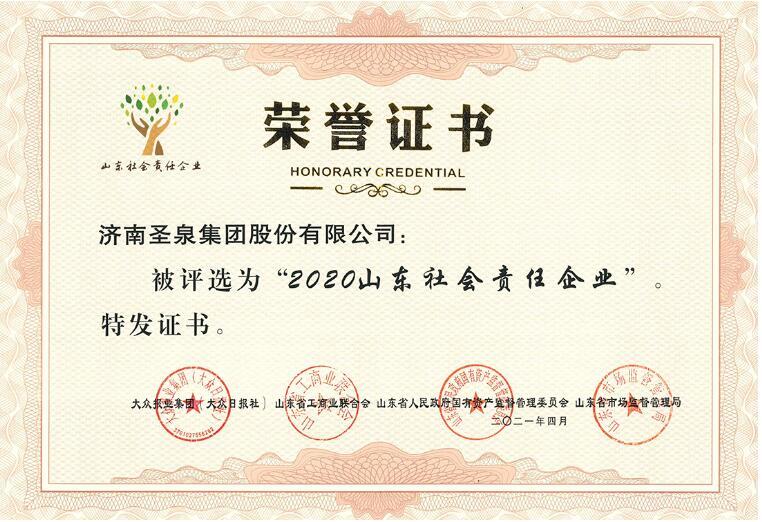 濟南聖泉集團榮獲“2020山東社會(huì)責任企業”稱号