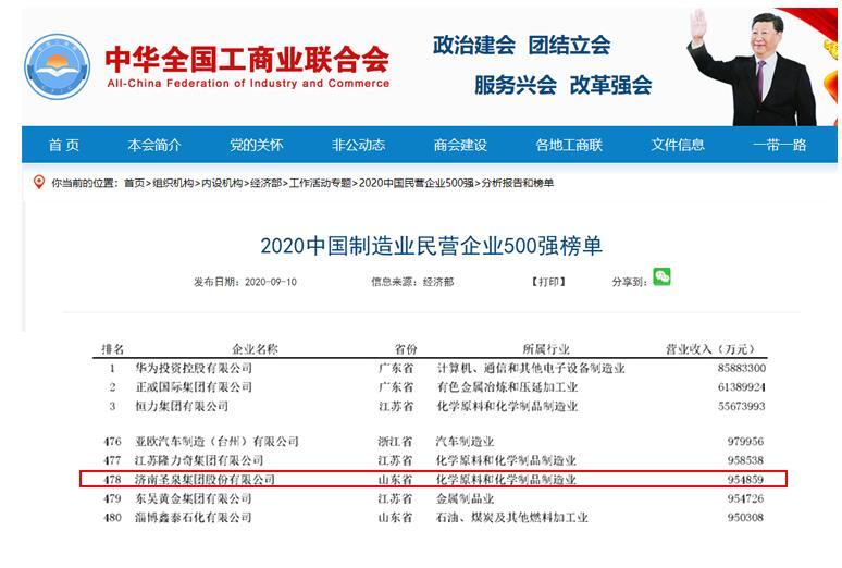 濟南聖泉集團連續入選“中國(guó)制造業民營企業500強”