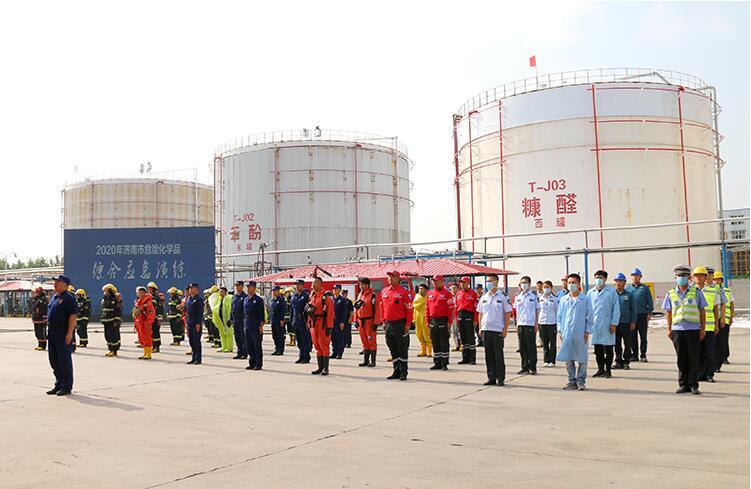 2020年6月24日,濟南市綜合應急演練在聖泉集團糠醛苯酚儲罐區舉行。濟南市應急管理局副局長(cháng)張磊,濟南消防支隊副支隊長(cháng)郝丕峰、王剛,章丘區委常委、副區長(cháng)王士強,濟南市安委會(huì)和章丘安委會(huì)各成(chéng)員單位,聖泉集團總裁唐地源、常務副總裁徐傳偉等集團領導現場觀摩了演練。