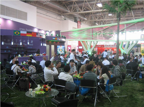 此次展會(huì)我公司展台面(miàn)積達630m2,“低碳經(jīng)濟綠色鑄造”是我們表現的主題,彰顯了我公司緻力于保護環境的發(fā)展方向(xiàng),引起(qǐ)了各界人士的廣泛關注和贊譽。我公司展台别具一格:綠色草坪、風電模型、豐富的展品、“操作能(néng)手”光榮榜、行爲藝術表演……吸引了衆多人士的光臨,拍照留念。展會(huì)上衆多新老客戶相聚,暢述友情、共謀發(fā)展,熔煉材料、過(guò)濾器、冒口等新産品得到了廣泛宣傳,擴大了影響。5月11日公司還(hái)邀請國(guó)務院陳全生參事(shì)做了“認清形勢把握機會(huì) 共圖發(fā)展”的報告,使400多位參加聽講的客戶受益匪淺。5月13日唐總作爲中國(guó)鑄協副理事(shì)長(cháng)參加了參展優質鑄件頒獎儀式,向(xiàng)獲獎者頒發(fā)了獎牌。此次展會(huì)取得圓滿成(chéng)功。