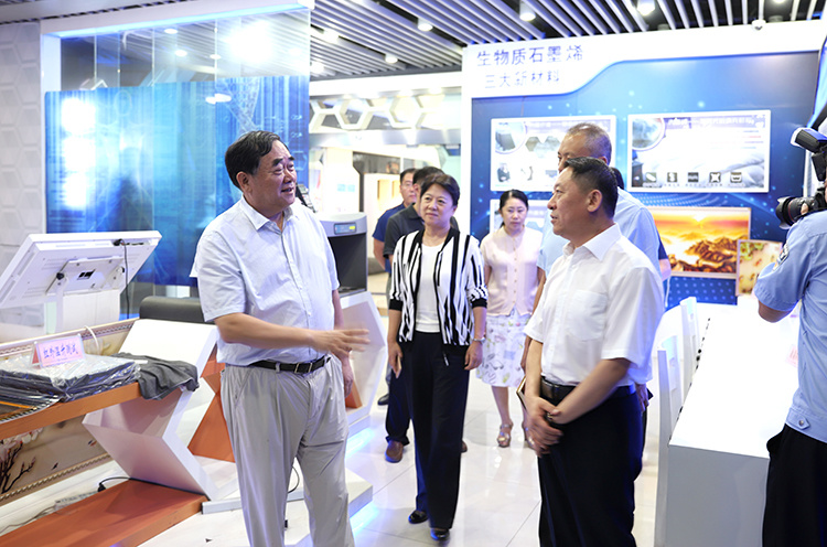 期間,王健一行還(hái)參觀了公司生物質石墨烯新材料展廳。