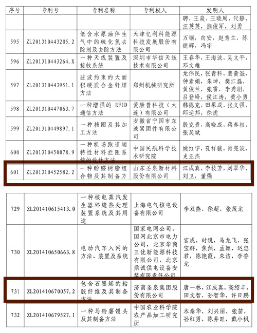 近日,國(guó)家知識産權局公示了第十九屆中國(guó)專利獎獲獎項目,聖泉集團自主研發(fā)的“包含石墨烯的粘膠纖維及其制備方法”、“一種(zhǒng)酚醛樹脂組合及其制備方法”兩(liǎng)項專利榮獲中國(guó)專利獎優秀獎。