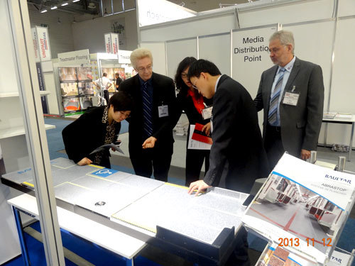 聖泉集團執行總裁唐地源帶隊參加了此次展會(huì)。輕芯鋼TM(SQ®Board)無機纖維系列産品及酚醛複合材料制品的展出,吸引了西門子、龐巴迪、阿爾斯通等國(guó)際知名機車公司設計及采購人員的極大興趣,紛紛來公司展台參觀洽談。接待了來自德國(guó)、英國(guó)、西班牙、法國(guó)、奧地利、加拿大等國(guó)鐵路内裝配件企業,并達成(chéng)初步合作意向(xiàng)。