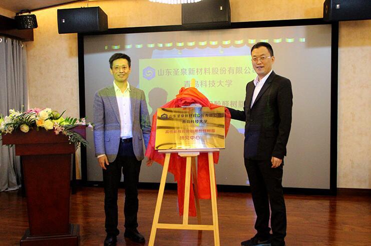 聖泉集團總裁唐地源、青島科技大學(xué)高分子科學(xué)與工程學(xué)院院長(cháng)宗成(chéng)中共同揭牌