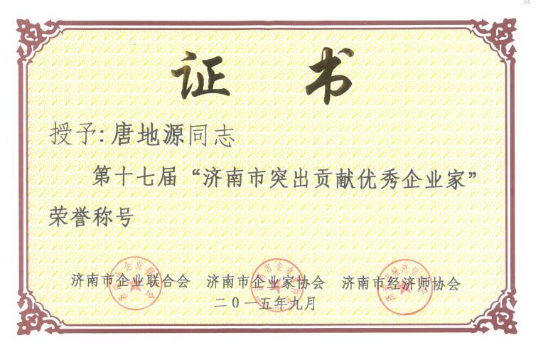 近日,2015年全國(guó)企業家活動日暨濟南市企業家年會(huì)在泉城濟南隆重開(kāi)幕。聖泉集團執行總裁唐地源應邀出席,并被授予"濟南市突出貢獻優秀企業家"榮譽稱号。