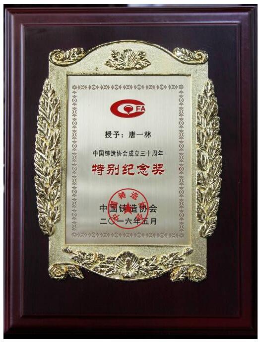 董事(shì)長(cháng)獲中國(guó)鑄造協會(huì)成(chéng)立三十周年特别紀念獎