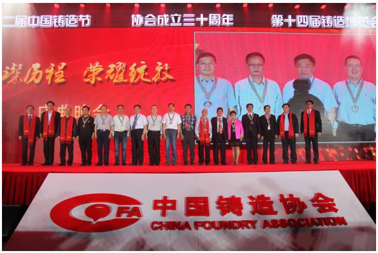 在中國(guó)鑄協成(chéng)立30周年之際,作爲亞洲規格最高、世界三大鑄造展會(huì)之一的中國(guó)鑄造旗艦展,第十二屆中國(guó)鑄造協會(huì)年會(huì)暨“第二屆中國(guó)鑄造節”于2016年5月15-20日在北京隆重舉行,聖泉集團執行總裁唐地源、副總裁祝建勳出席并參加全程參與了相關活動。此次年會(huì)評選出了諸多獎項,公司憑借在鑄造行業的領軍地位和對(duì)鑄造業的突出貢獻,載譽而歸,董事(shì)長(cháng)唐一林榮獲“中國(guó)鑄造協會(huì)成(chéng)立30周年特别紀念獎”、“全國(guó)鑄造行業風雲人物獎”、“奉獻鑄造行業30年”榮譽稱号,祝建勳副總裁、劉烨、張科峰榮獲“奉獻鑄造行業30年”榮譽稱号;張科峰榮獲“紅雀杯卓越工程師”稱号。