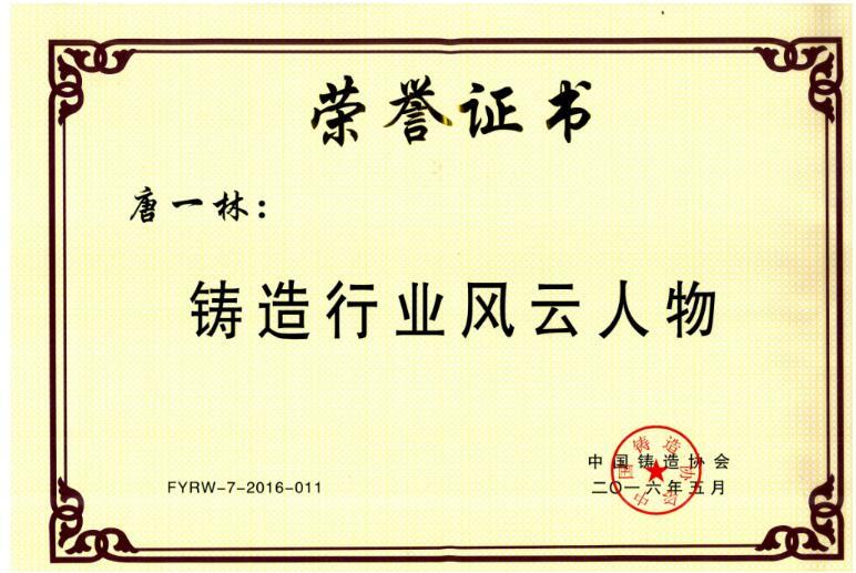 董事(shì)長(cháng)被中國(guó)鑄造協會(huì)評選爲鑄造行業風雲人物