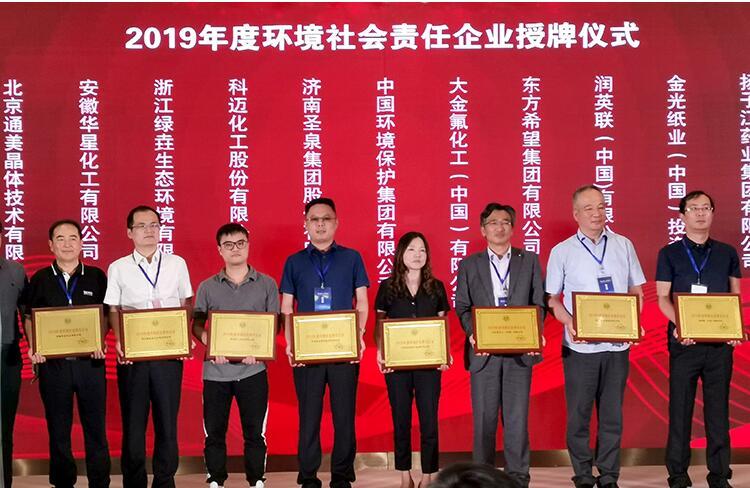 濟南聖泉集團榮獲“2019年度環保社會(huì)責任企業”稱号