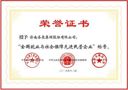 濟南聖泉集團榮獲“全國(guó)就(jiù)業與社會(huì)保障先進(jìn)民營企業”稱号