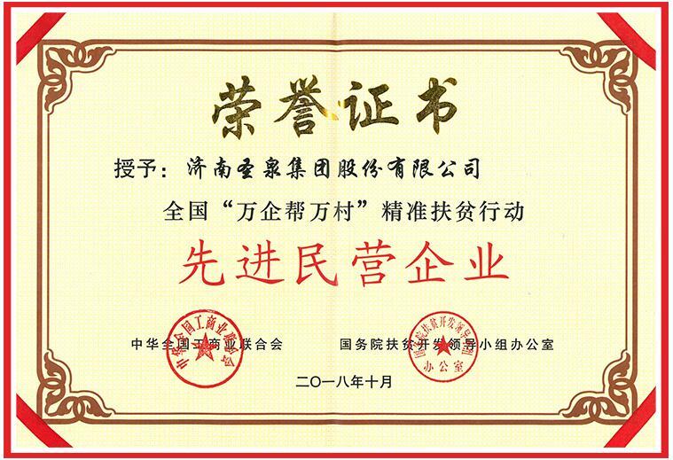 聖泉集團榮膺全國(guó)“萬企幫萬村”精準扶貧行動先進(jìn)民營企業榮譽稱号