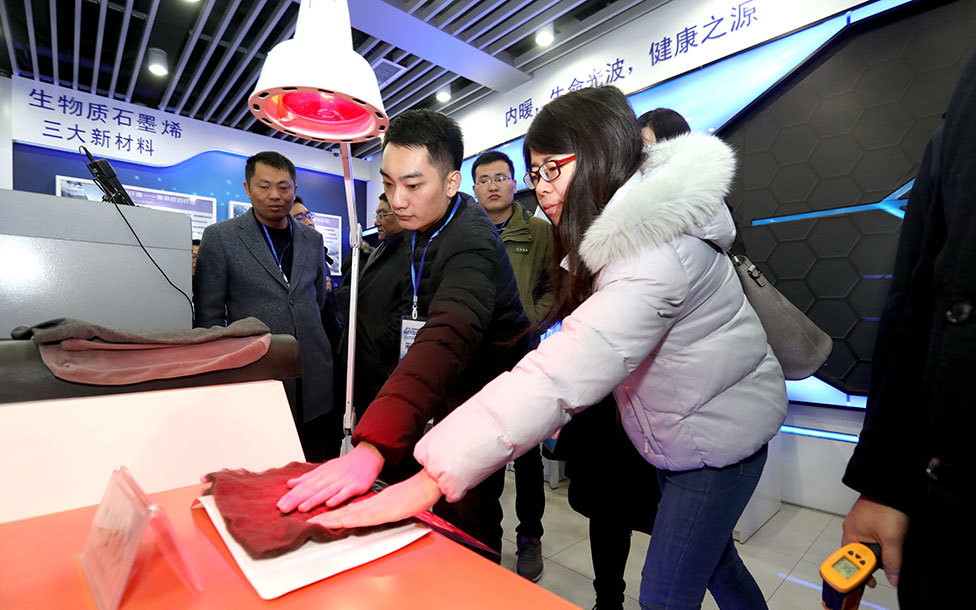 唐一林董事(shì)長(cháng)向(xiàng)采訪團介紹了木質素納米纖維素,增強紙、合成(chéng)革、增強橡膠等木質素納米纖維素新材料産品,并隆重介紹了最新研發(fā)成(chéng)功的石墨烯改性導電纖維及恒溫蓄熱纖維。石墨烯改性導電纖維可以解決靜電問題,有效避免加油站、煉油廠等領域靜電帶來的災難。恒溫蓄熱纖維可以在外部冷熱環境變化時(shí),在一段時(shí)間内保持恒溫,讓人不會(huì)因爲溫差的巨大變化而感到不适甚至生病,是石墨烯改性纖維領域的又一重大突破。目前兩(liǎng)款新産品已完成(chéng)研發(fā)工作,明年將(jiāng)實現量産,推向(xiàng)市場。他一并向(xiàng)采訪團展示了石墨烯空氣淨化器、石墨烯加熱護具、石墨烯服飾等石墨烯産品。
