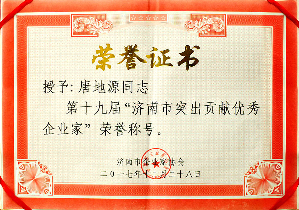 聖泉集團總裁唐地源榮獲第十九屆“濟南市突出貢獻優秀企業家”榮譽稱号