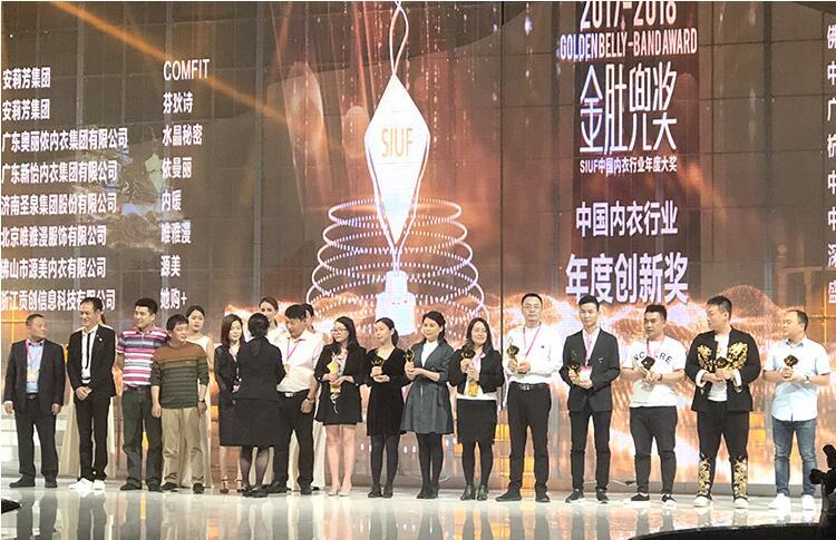 SIUF中國(guó)内衣行業年度大獎-金肚兜獎被稱爲中國(guó)内衣業的“奧斯卡”,是中國(guó)内衣行業至高榮譽大獎。聖泉内暖®品牌憑借獨特的創新力和在業内的領先優勢,榮獲2017-2018SIUF金肚兜獎“中國(guó)内衣行業年度創新獎”,充分展現出對(duì)聖泉集團積極探索努力創新實踐的肯定。