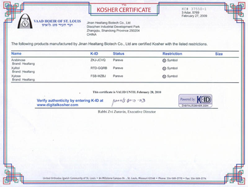 唐和唐阿拉伯糖和木糖醇産品通過(guò)“Halal”和“Kosher”兩(liǎng)大認證