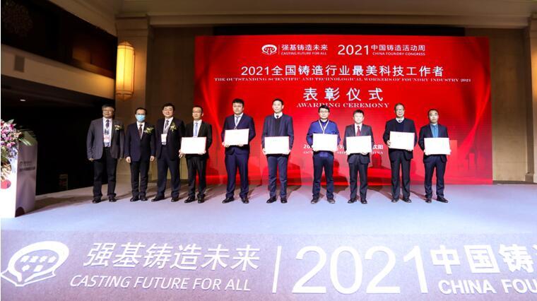 張楊(右一)獲得“2021全國(guó)鑄造行業最美科技工作者”稱号