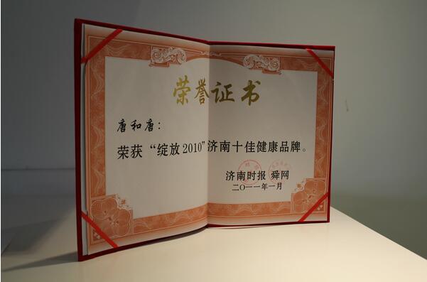 由濟南時(shí)報和舜網主辦,濟南日報、都(dōu)市女報、當代健康報、山東衛視《養生》、濟南教育電視台等幾十家媒體聯合舉辦的“綻放•2010”十佳健康品牌評選活動日前揭曉。經(jīng)過(guò)幾十萬消費者的推薦及專家組層層審核,唐和唐榮膺“十大健康品牌”。頒獎典禮于1月20日在濟南魚翅皇宮大酒店舉行。濟南聖泉集團副總裁、聖泉唐和唐生物科技有限公司副總經(jīng)理唐地源、市場部經(jīng)理李瑛參加了頒獎典禮。