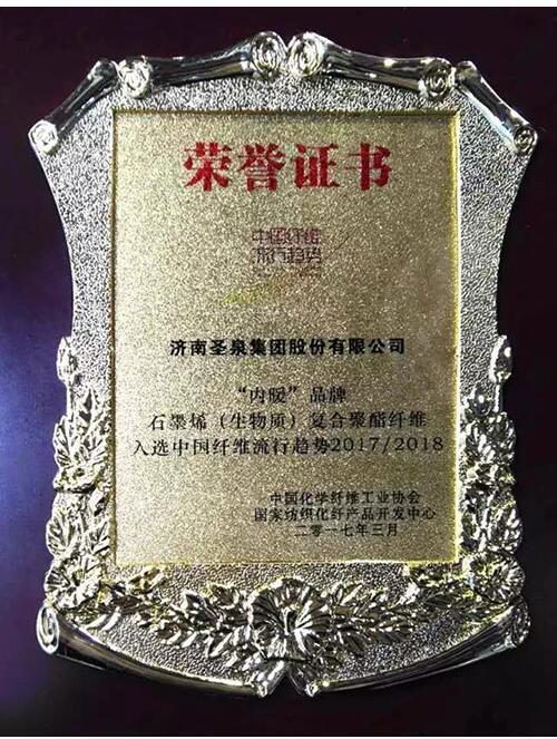 據主辦方介紹,聖泉集團“生物質石墨烯複合聚酯纖維”成(chéng)功入選中國(guó)化纖行業協會(huì)2017/2018中國(guó)纖維流行趨勢品牌,是繼去年來,聖泉集團生物質石墨烯新材料連續兩(liǎng)年成(chéng)功入選中國(guó)纖維流行趨勢品牌。