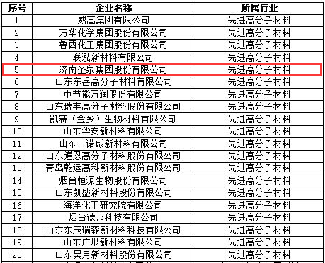 近日,山東省工信廳下發(fā)《關于公布2018年山東省新材料産業領軍企業50強的通知》(魯工信原〔2018〕62号),濟南聖泉集團股份有限公司成(chéng)功入選,成(chéng)爲我省乃至全國(guó)高性能(néng)樹脂及複合新材料行業标杆。