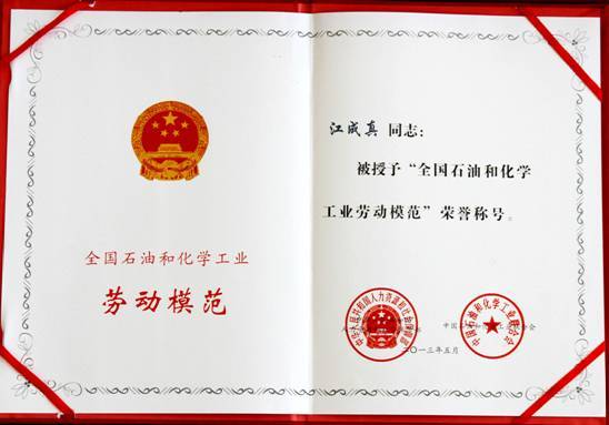 聖泉集團常務副總裁江成(chéng)真榮獲“全國(guó)石油和化學(xué)工業勞動模範”榮譽稱号